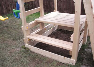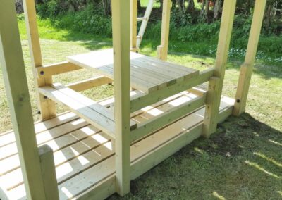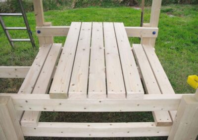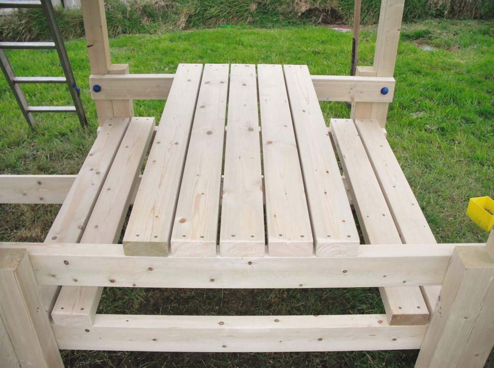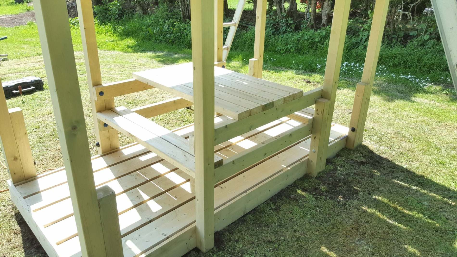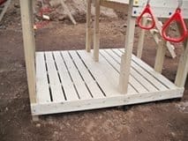 Area below is dug out and felted 2″ x 2″ framework is screwed in then floored level with top board. 4″ x 2″ beams put all round and railed.