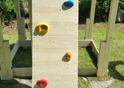 Climbing wall available in two sizes – 1.5M high 5x rocks and 2.3M high 7x rocks. These walls are made with 4″ x 2″ and 3″ x 3″ frames with rocks bolted in from the back, making them very strong and stable.
